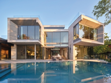 또한, 이 주택은 평범한 주거 공간의 역할을 넘어 최대 80명까지 수용하는 대규모 모임도 충분히 소화할 수 있도록 설계되었다. 거실과 주방, 다이닝 공간은 절벽을 따라 이어지는 야외 테라스와 인피니티 풀로 자연스럽게 확장되며, 차고 하부에는 영화관과 게임룸을 마련해 가족만의 여가 공간을 완성했다. 엘리베이터는 지하층부터 3층 가족 라운지와 옥상 데크까지 모든 층을 연결하며 이동의 편의성을 높인다.